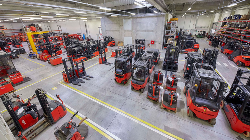 Linde Material Handling базируется в Ашаффенбурге и управляет глобальной сетью продаж. В Германии Linde производит подъёмно-транспортное оборудование на своих предприятиях в Ашаффенбурге-Нилькхайме, Кале-на-Майне и Вейльбахе. Другие производственные площадки включают заводы Fenwick-Linde в Шателлеро (Франция), KION North America в Саммервилле (Южная Каролина, США), Linde-Xiamen в Сямыне (Китай), Linde Pohony в Чески-Крумлове (Чехия) и Stříbro (Чехия). Центр по переработке подержанных погрузчиков расположен в Велке-Биловице (Чехия).