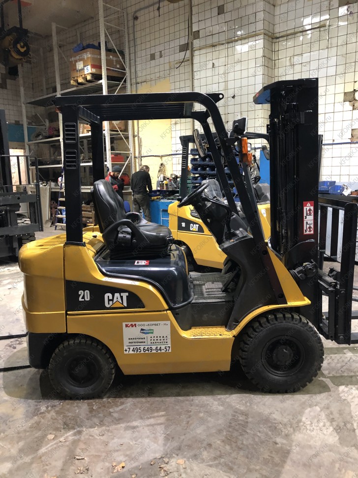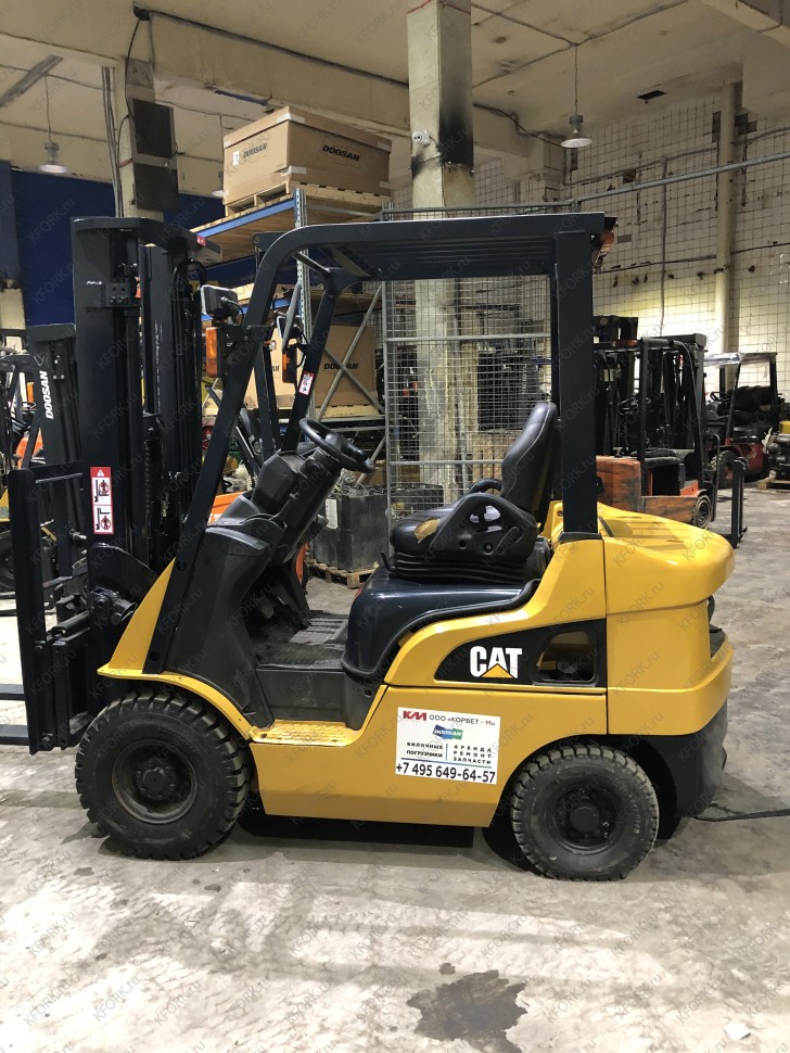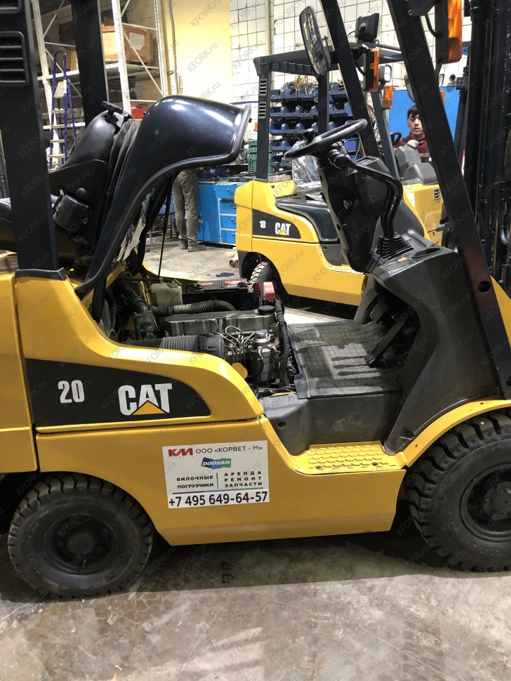 Дизельный автопогрузчик Caterpillar DP20CNT с инвентарным номером КМ052 2008 года выпуска. Имеет грузоподъемность 2000 кг. Гарантия: 3 мес или 500 м/час.