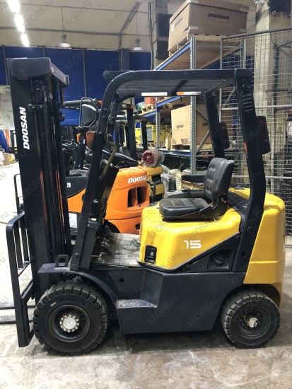 Дизельный автопогрузчик Daewoo D15S-2 с инвентарным номером КМ061 2004 года выпуска. Имеет грузоподъемность 1500 кг. Гарантия: 3 мес или 500 м/час.