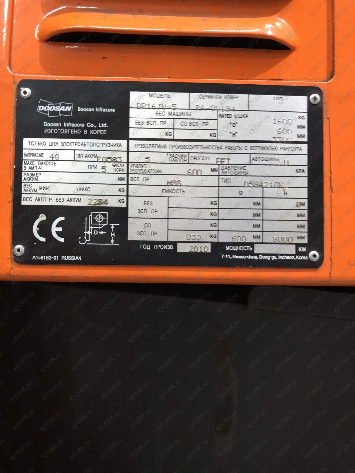Ричтрак Doosan BR16JW с инвентарным номером КМ033 2010 года выпуска. Имеет грузоподъемность 1600 кг.
